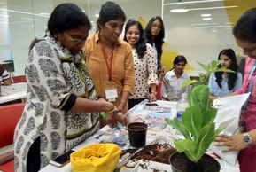 A kitchen gardening workshop was conducted for the employees of CRISIL Foundation at their office premises in Gurgaon. It was held in collaboration with Bombay Natural History Society and was attended by 56 employees. The workshop started with a presentation explaining the basics, followed by a demonstration on compost making from one's own kitchen waste. The employees got a hands on experience learning the techniques of planting a sapling in the pot and to prepare planters using recycled PET bottles.