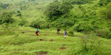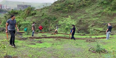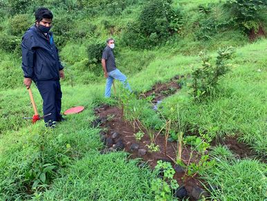 A small group of volunteers helped us by repairing the contour bunds at our Taloja Hill Watershed Project. The soil from the bunds was washed away exposing the bordering rocks as well as roots of live hedge plants. The volunteers repaired six contour bunds by scooping our accumulated soil in trenches and reinforcing the bunds.