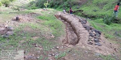 we constructed 15 contour bunds on the slopes of the hill. In absence green cover on the leeward side of the hill, the rainwater runoff is high. To slow down the rain water, these contour bunds have been created. These will hold water as well as the run off soil and recharge the ground water table.